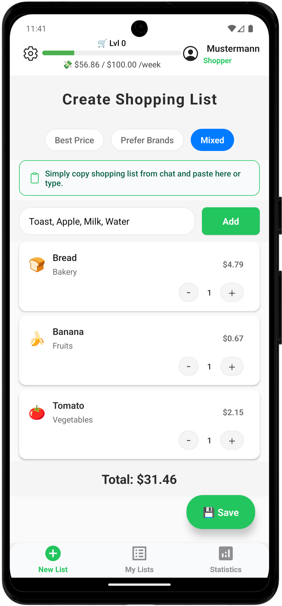 Set weekly budgets, track your expected expenses in real-time, and get detailed insights into your grocery shopping habits. Save money with smart price strategies.